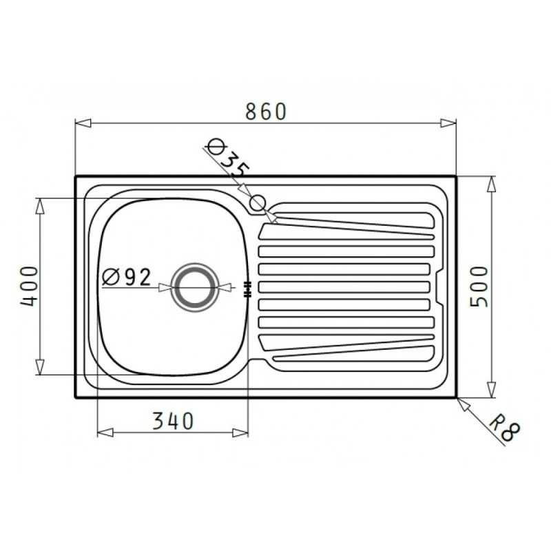 - Dimensioni del lavello: 860 x 500 mm, ideale per adattarsi a diverse configurazioni di cucina.