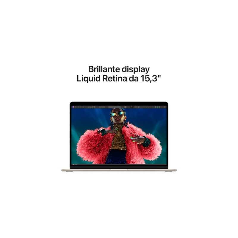 - Display Liquid Retina da 15,3": Fornisce immagini straordinarie con colori vividi e dettagli nitidi, perfetto per la visione di contenuti multimediali e per il lavoro grafico.