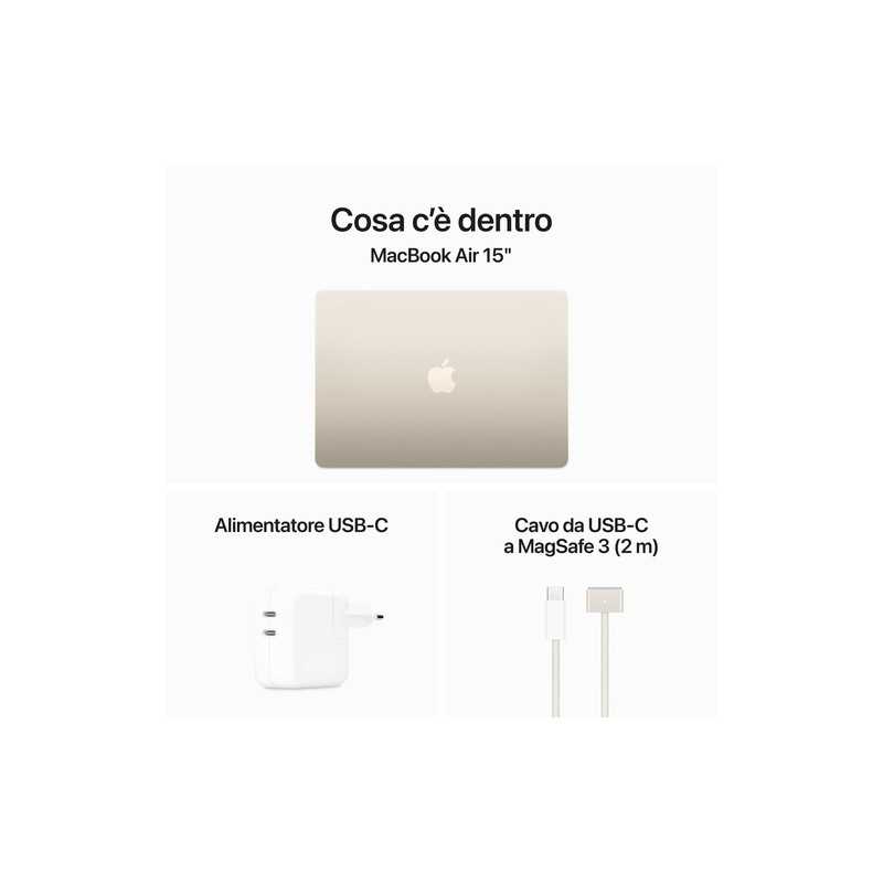 Apple MacBook Air 15": Chip M3 con CPU 8-core e GPU 10-core, 512GB SSD - Galassia