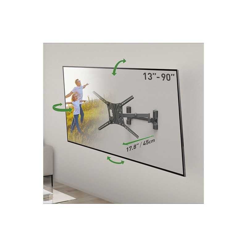 Il supporto TV Barkan Mounting Systems WH-464-SW è l'ideale per chi desidera un'installazione elegante e funzionale del proprio televisore. Questo prodotto si rivolge a famiglie, appassionati di cinema e sport, e professionisti che desiderano ottimizzare il proprio spazio visivo. Con una capacità di supporto fino a 60 kg e compatibile con schermi fino a 90 pollici, è perfetto per chi ha un grande televisore e cerca un montaggio sicuro e versatile. La possibilità di inclinazione regolabile da -5 a 15 gradi e un angolo di rotazione di 180 gradi consente di adattare la visione a qualsiasi esigenza, rendendolo ideale per stanze con diverse configurazioni di seduta. Inoltre, il design elegante e il colore nero si integrano perfettamente in qualsiasi ambiente, dal soggiorno moderno all'ufficio professionale. Questo supporto è perfetto per chi cerca non solo funzionalità, ma anche un tocco di stile nel proprio spazio.